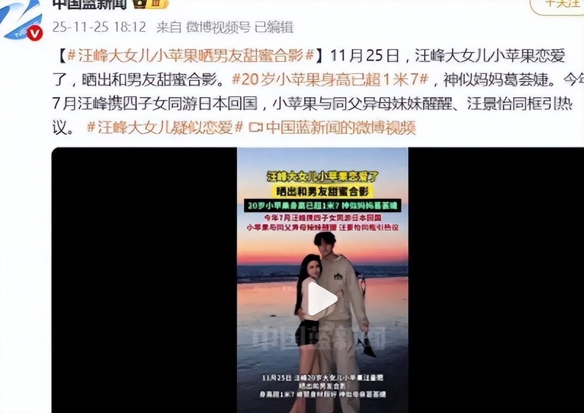 最近汪峰家的情感连续剧,比短视频狗血剧还抓马。全家组团搞对象的架势,主打一个“恋爱自由”——20岁小苹果官宣恋情,亲妈葛荟婕直播晒新男友,汪峰去年520就和森林北认爱了。